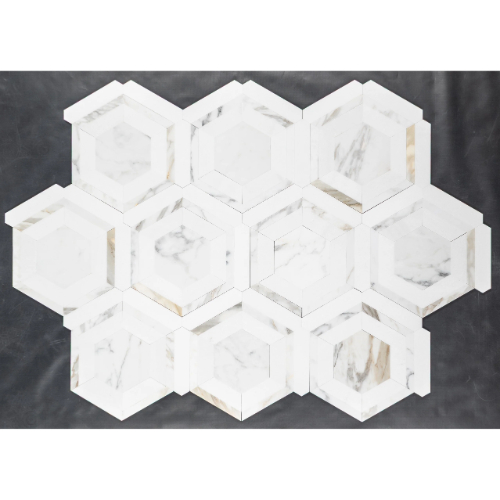 Calacatta Gold Honeycomb with White Thassos Mosaic Honed