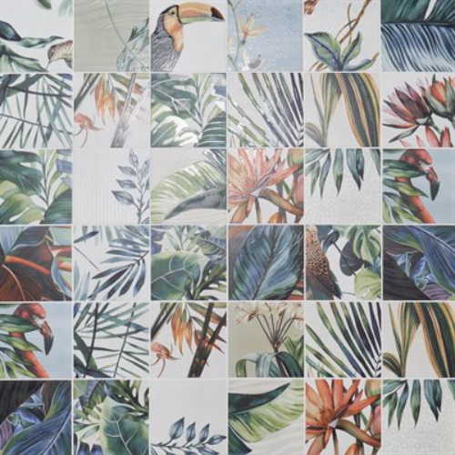The Angela Harris Florista Tikida Decor Mural 8×8 tile brings intricate artistic flair to interior walls. Made from ceramic with a matte finish, this Spanish tile features 24 unique faces and is ideal for residential or commercial use. Not suitable for floors or outdoor areas. Chemical resistant with minimal shade variation.