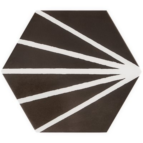 Aries 2.0 Nero with Blanco Line is an 8″ hexagonal porcelain tile in a bold matte black with a clean white line. Perfect for stylish indoor or outdoor designs, it’s frost-, scratch-, and stain-resistant. Ideal for residential or commercial use. Sold by the box (24 tiles, 9.03 sq. ft.).