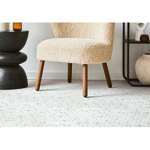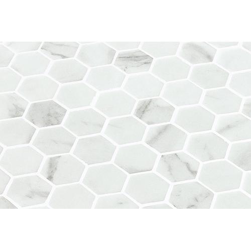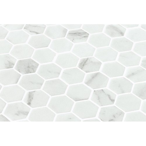 Introducing Armor Point: 1″ Hex tiles on 11 1/2″x 11 13/16″ sheets. Each sheet covers .943 SQF with 12 rows of 120 tiles. Cut into borders every 2 rows, 5/32″ thick with 1/16″ grout joint. Mesh mounted for easy installation.