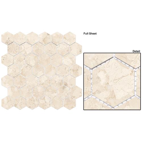Introducing the Arpeggio DCOF Matte Hex Mosaic, featuring 2 x 2” tiles on a 12 x 12” sheet. Made of porcelain with a DCOF Matte finish, PEI IV rating, and DCOF >0.42. Mesh mounted for easy installation with recommended grout joint as per mosaic design.