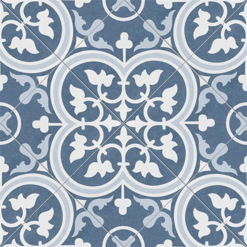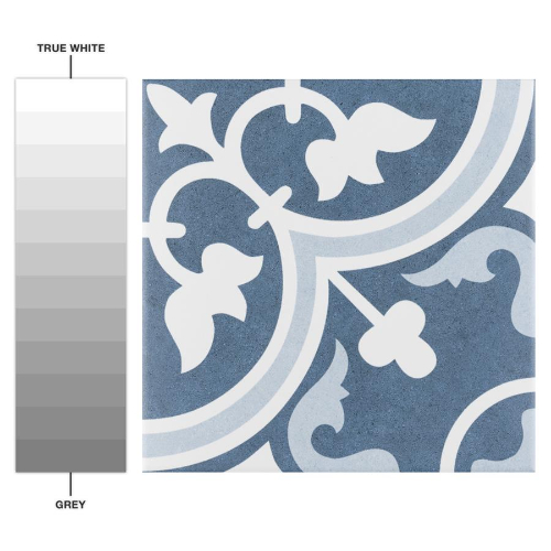 Introducing Arte Arctic 9-3/4″x9-3/4″ Porcelain Floor/Wall Tile. Crafted in Spain, this tile features a large floral old-world pattern in snow white and light blue, inspired by artisan cement tiles. Its impervious, frost-resistant, and durable features make it ideal for indoor and outdoor installations. Perfect for modern and historic designs.