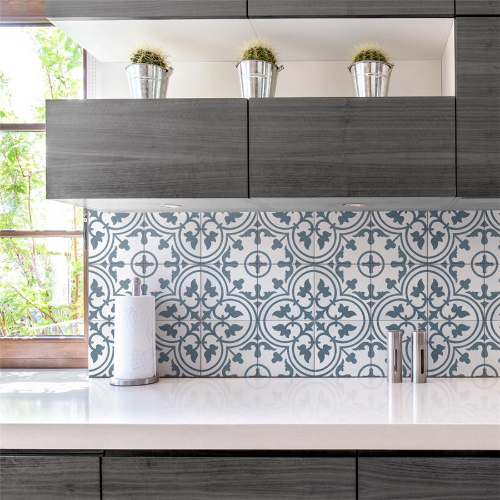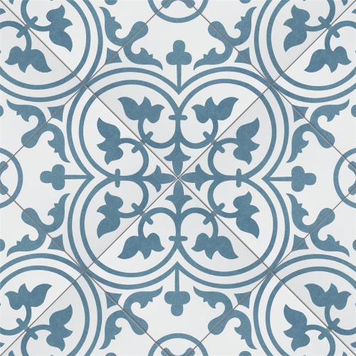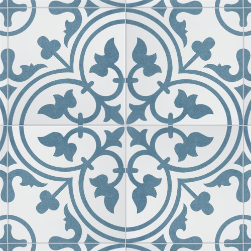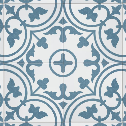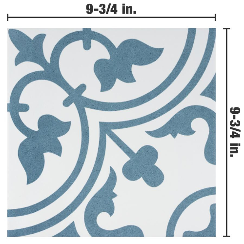 Introducing Arte Cloud 9-3/4″x9-3/4″ Porcelain Floor/Wall Tile. Crafted in Spain, this tile features a large floral old-world pattern in denim blue on an off-white base. Impervious and frost-resistant, it’s perfect for indoor/outdoor use in kitchens, bathrooms, patios, and more. Elevate your space with this durable and stylish tile.
