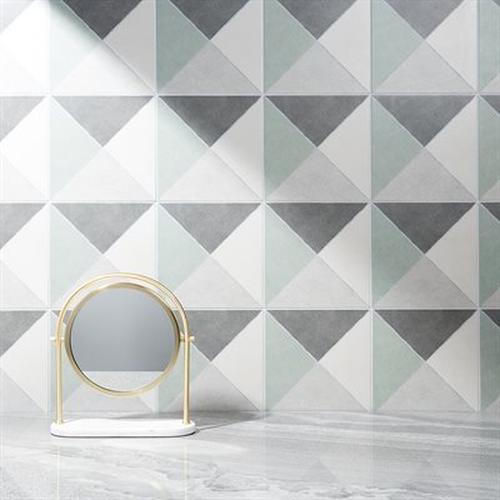 Artstract Diamond Sage features a bold geometric pattern in soothing green tones on an 8.78″ matte porcelain tile. Suitable for walls and floors, indoors or out. With a PEI 3 rating and frost resistance, it’s ideal for both residential and commercial use. Sold by the box (20 tiles).