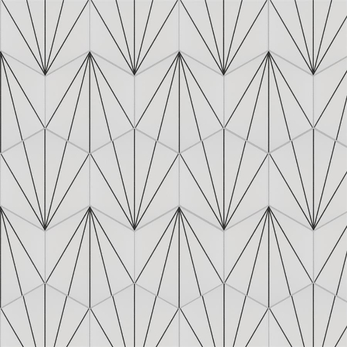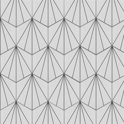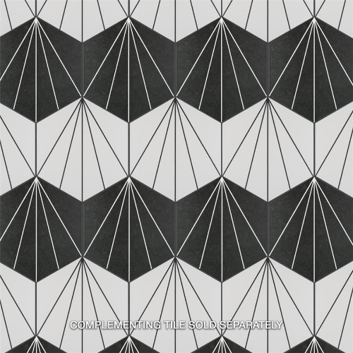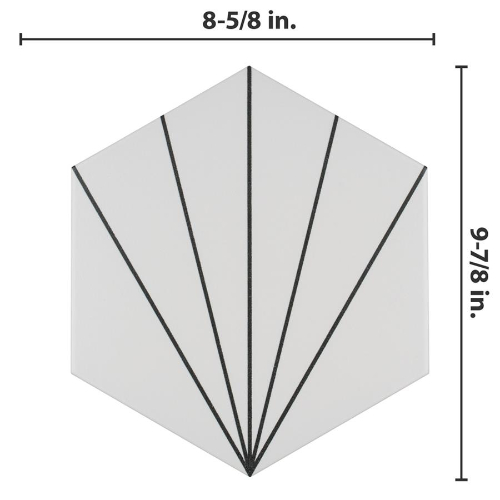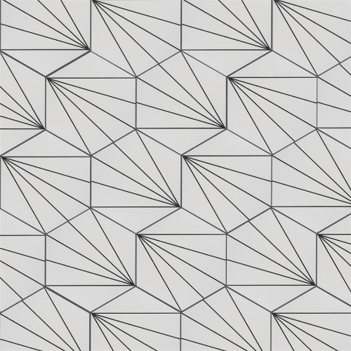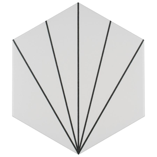 Transform your space with Aster Hex Blanco Porcelain Tile. This geometric masterpiece features a snow white color with charcoal black lines, creating captivating starburst patterns. Ideal for indoor and outdoor use, this tile is impervious and frost-resistant. Elevate your design with this versatile and visually appealing tile from Spain.