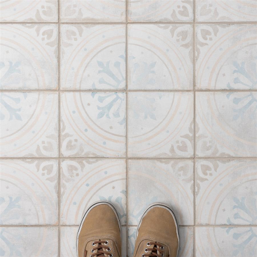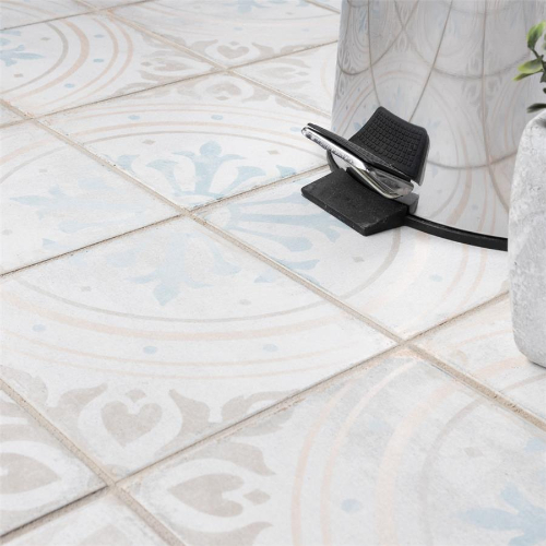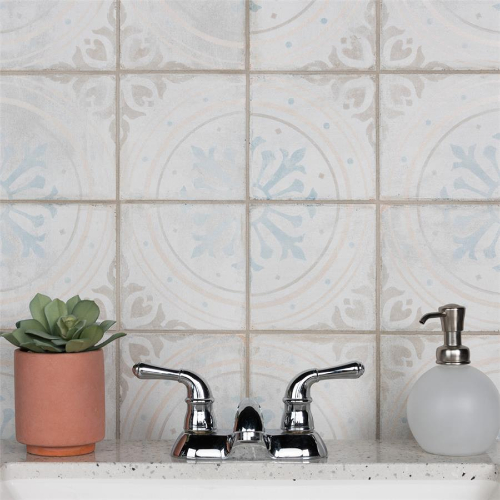 Introducing our Barcelona Decor Raval 5-3/4″x5-3/4″ Porcelain Floor and Wall Tile. This tile beautifully combines modern and vintage design elements, featuring a worn cement look with floral motifs in light blue, beige, and brown on an antique white base. Perfect for indoor and outdoor spaces, this durable tile is ideal for various installations. Made from…
