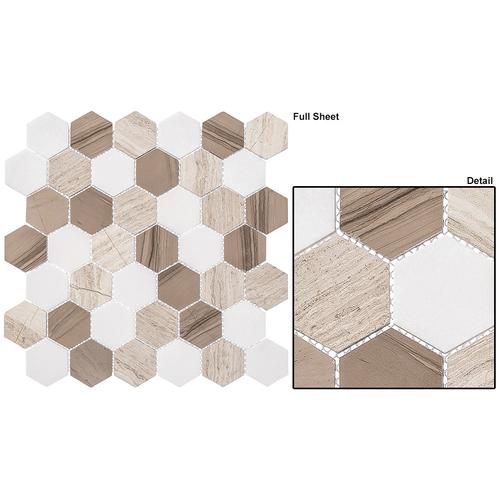 Introducing Bay Colony 2″ Hexagon tiles, featuring a sheet size of 11.875″ x 11.875″ and a coverage of .97 SF. With 7 rows per sheet and 42 tiles per sheet, these tiles are 5/16″ thick and come with a 1/16″ grout joint. Perfect for creating stunning borders.