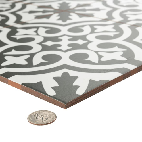 Introducing the Berkeley Black II 17-5/8″x17-5/8″ Ceramic Floor/Wall Tile. This tile captures a patterned look with a smooth, matte finish, perfect for residential and commercial spaces. Ideal for indoor installations in kitchens, bathrooms, backsplashes, showers, and more. Pair with other Berkeley Collection products for a cohesive look. Made in Spain.