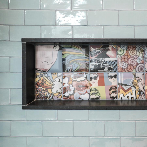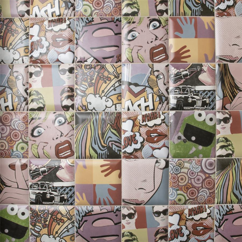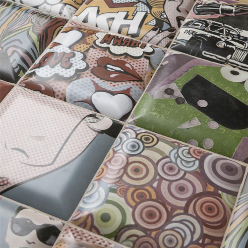 Introducing the Bombato Decor York 5-7/8″ x 5-7/8″ Ceramic Wall Tile. Inspired by comic book patterns, this artistic tile features 12 unique designs per case for a playful mix-and-match effect. With bright colors, a satin finish, and natural ingredients free from allergens, VOCs, and more, this tile is perfect for indoor walls. Made in Spain.