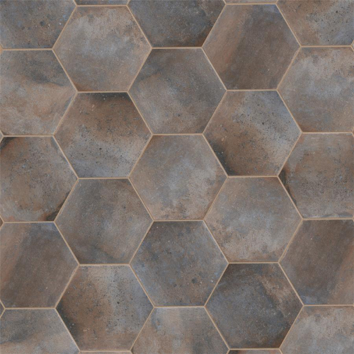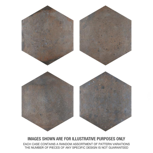 Introducing the Boston Ferro Hex Ombra Porcelain Tile. Bring rustic charm to any space with its unique variation. Featuring tones of chocolate brown and ash grey, each piece is one-of-a-kind. Perfect for indoor and outdoor use, this tile offers endless design possibilities. Made from natural ingredients, it’s a healthy choice for your home.