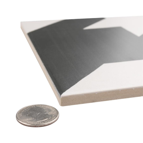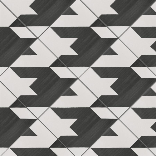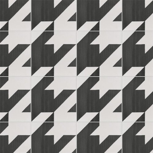 Introducing the Caprice Tweed Black & White Porcelain Tile. Achieve patterned elegance with contrasting dark charcoal and eggshell white shades, creating a classic houndstooth pattern. This durable, frost-resistant tile is perfect for residential areas like entryways, kitchens, showers, and patios. With a slip-resistant surface, it’s safe for wet locations. Made in Spain.