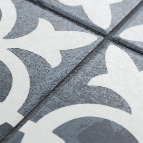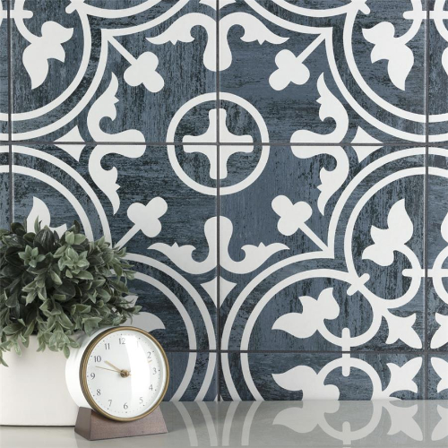Introducing our Cassis Arte Black Night 9-3/4″ x 9-3/4″ Porcelain Floor and Wall Tile. Mimicking distressed wood with an old-world charm, this tile features a large floral design in faded charcoal black tones. With rich detail, textured finish, and realistic woodgrains, it offers versatility in installation patterns. Ideal for indoor and outdoor use, including backsplashes,…
