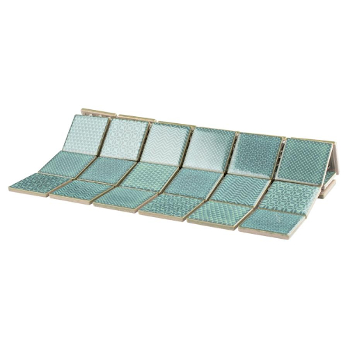 Introducing the Celadon Emerald 11-3/4 in. x 11-3/4 in. Porcelain Mosaic Tile. This coastal chic tile features seafoam and emerald green shades with geometric and chevron patterns. Its glossy surface creates depth, suitable for indoor and outdoor use. Made from natural ingredients, it’s allergen-free and ideal for your space. Originating from Thailand.