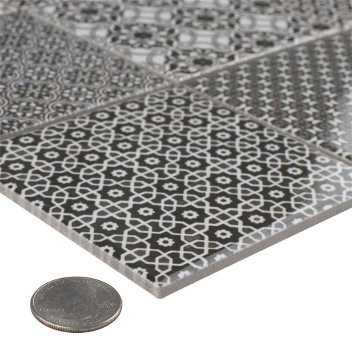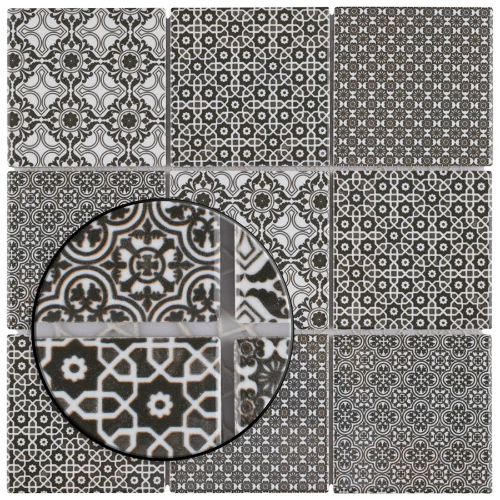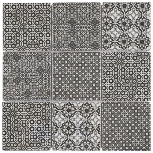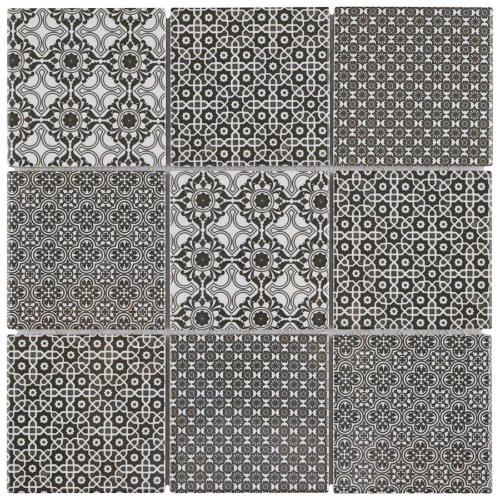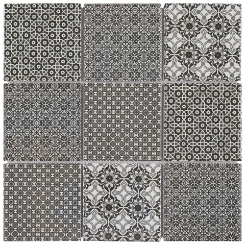 Introducing our Classico 4″ Black 11-5/8″x11-5/8″ Porcelain Mosaic Tile. This geometric patchwork mosaic combines four old-world designs in black and white tones, creating a contemporary twist on traditional mosaic tiles. With a smooth surface and glossy finish, this tile is perfect for indoor and outdoor use, including kitchens, bathrooms, and showers. Made from natural ingredients,…