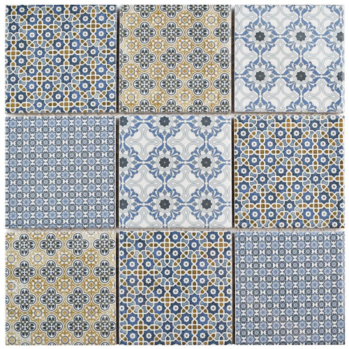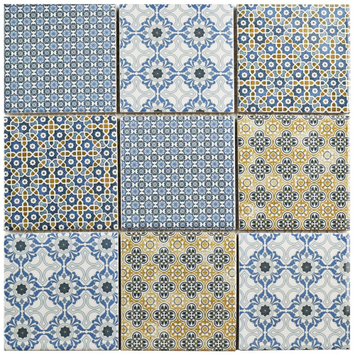 Introducing the Classico 4″ Mix Porcelain Mosaic Tile. This 11-5/8″x11-5/8″ tile combines the intricate look of individual tiles with the easy installation of a mosaic. Featuring four old-world designs with white and goldenrod accents, shades of denim, stone, and dark sky blue, this rustic piece brings a touch of Spanish tile to any space. The…