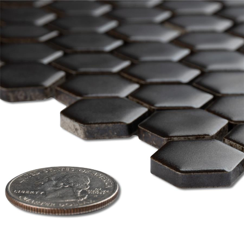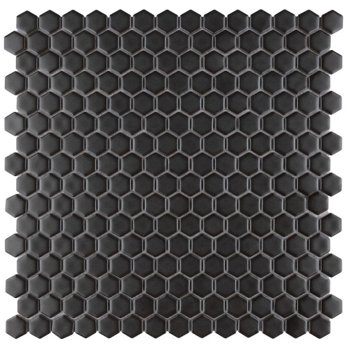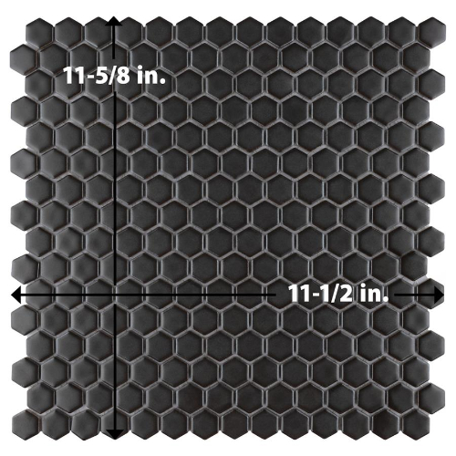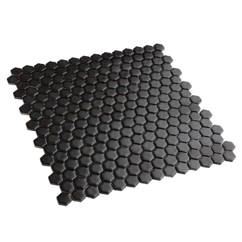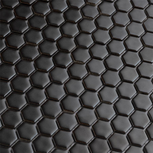 Introducing our Colmena Hex Matte Carbon Porcelain Floor and Wall Tile! This black hexagon mosaic offers a smooth, matte finish for a versatile decorative touch. With impervious and frost-resistant features, it’s perfect for indoor/outdoor use in bathrooms, backsplashes, showers, and more. Pair with other Colmena Collection products for a stunning look. Made in Japan.