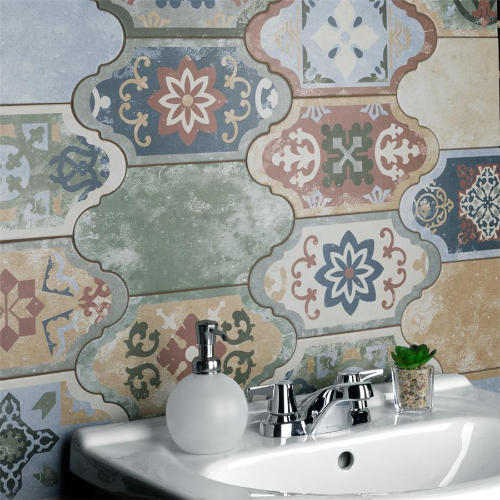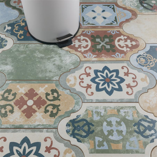 Introducing the Corinto Provenzal Colors Mix Porcelain Floor and Wall Tile. This rustic charm features unique arabesque shapes with 29 print variations of geometric and floral patterns. Earthy green, cornflower blue, vintage barn red, denim, and beige hues with imitation scuff marks for an aged look. Suitable for indoor and outdoor use. Made from natural…