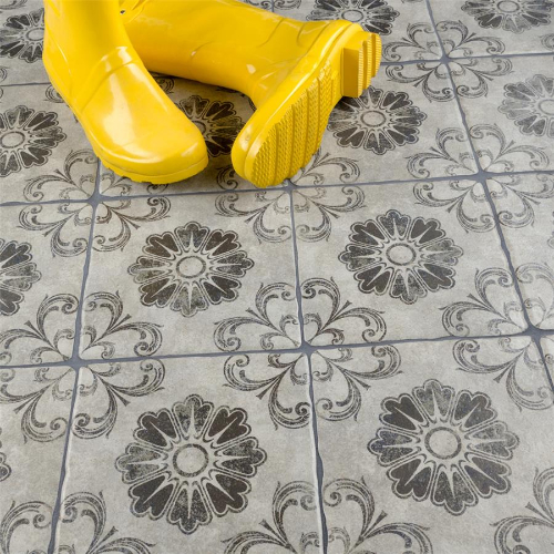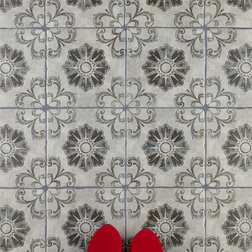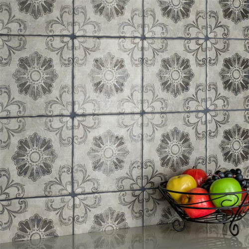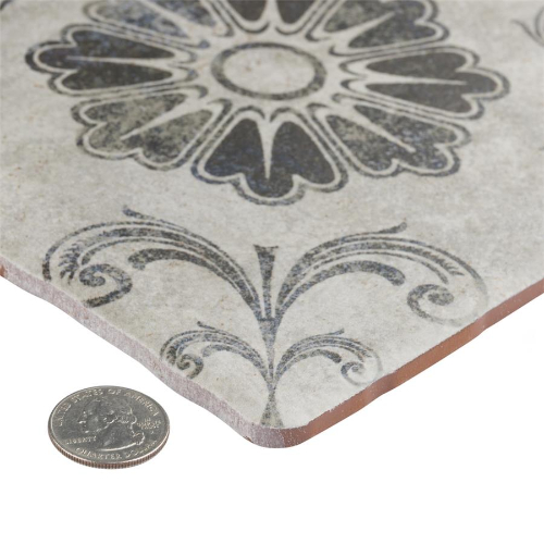 Introducing the Costa Cendra Decor Fleur Ceramic Tile. With a rustic charm in muted tones, this 7-3/4″ x 7-3/4″ floor and wall tile features a handmade look with floral decor options. Explore the Costa Series for endless design possibilities. Quality Spanish tile suitable for indoor spaces.