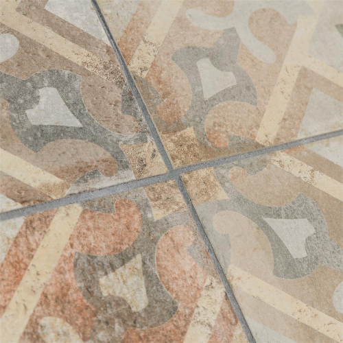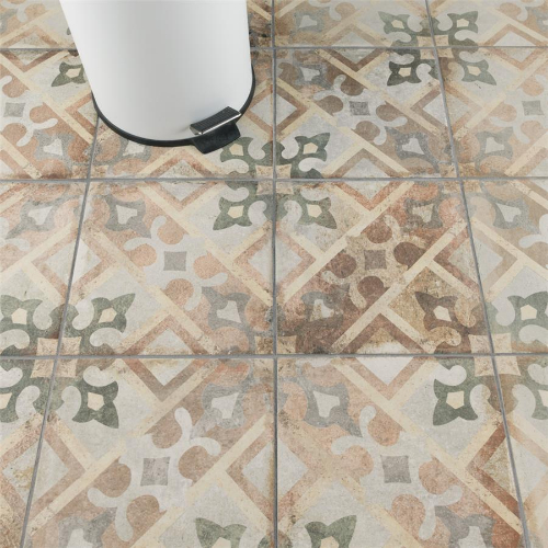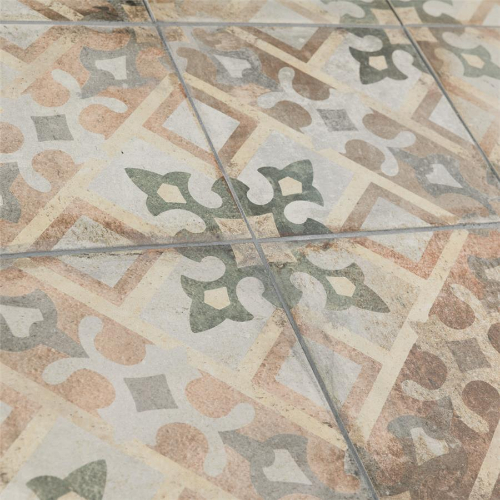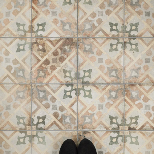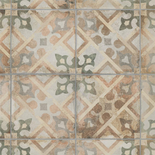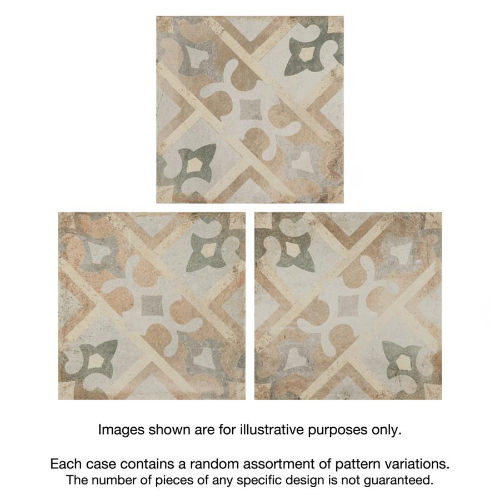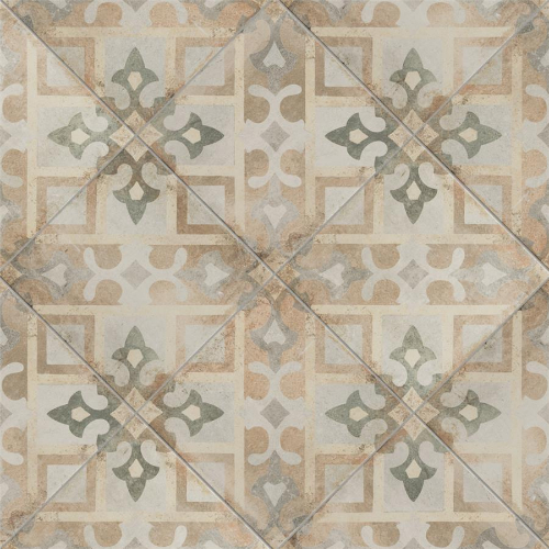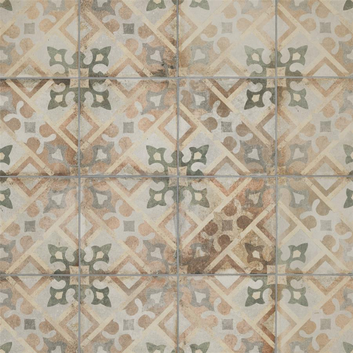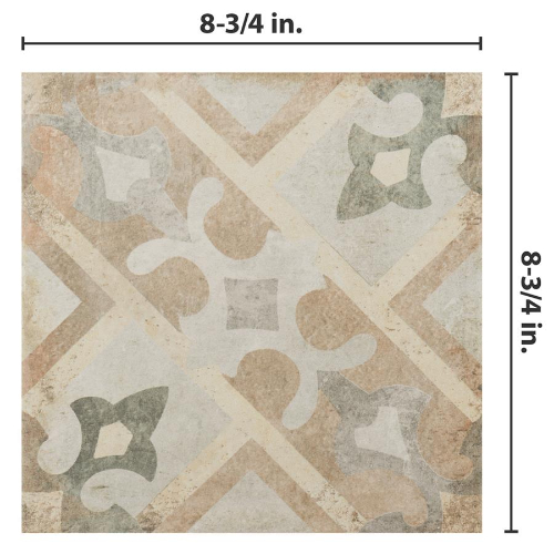 Introducing our D’Anticatto Decor Laterza 8-3/4 in. x 8-3/4 in. Porcelain Floor and Wall Tile. Radiating rustic charm with a worn cement appearance, this tile features geometric motifs in moss green, copper, fog grey, and light yellow on a textured beige base. Perfect for indoor and outdoor spaces, this durable tile offers a century-old aesthetic.…