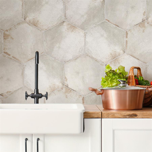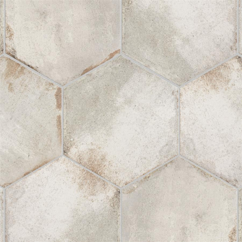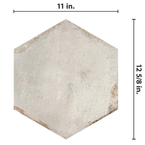 Introducing the D’Anticatto Hex Bianco Porcelain Tile, exuding rustic charm with a worn cement look. Featuring faded beige, grey, and white hues, rust accents, and realistic scuffs, this encaustic-inspired hexagon tile offers a century-old aesthetic. With 26 print variations per case, it’s perfect for indoor/outdoor use in various settings. Made from natural ingredients, it’s allergen-free…
