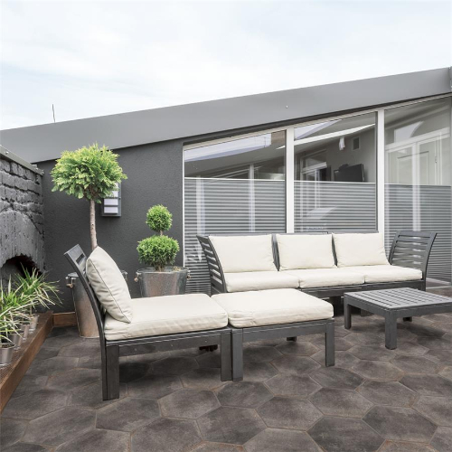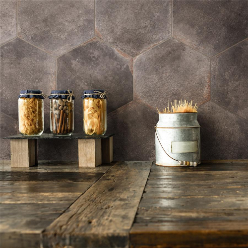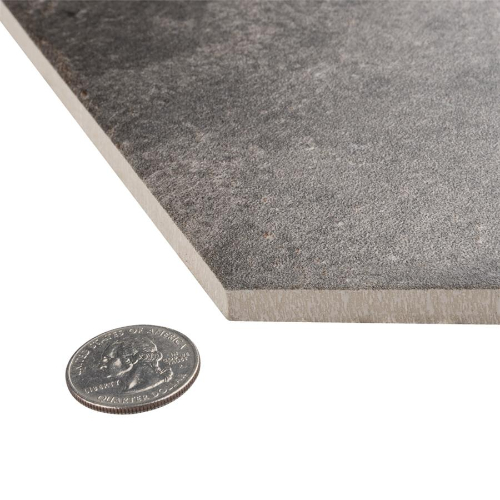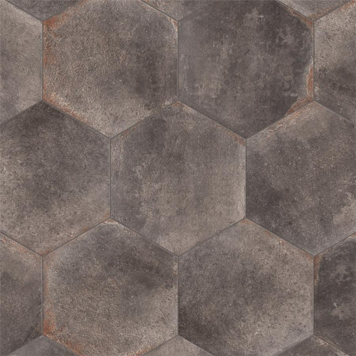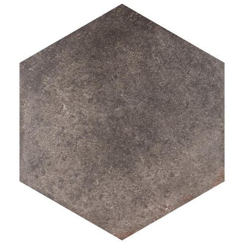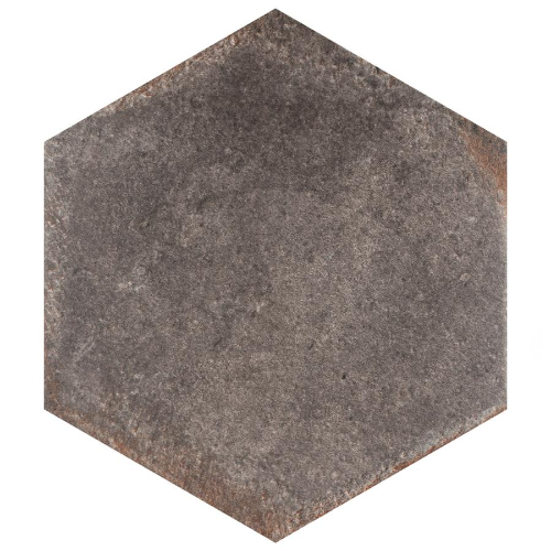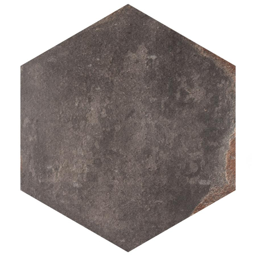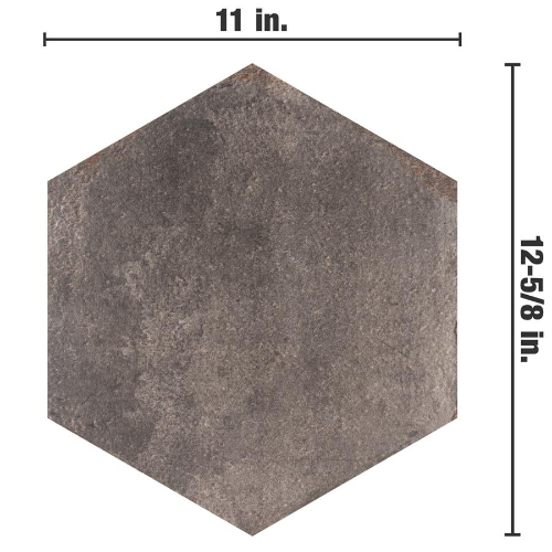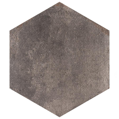 Introducing the D’Anticatto Hex Notte Porcelain Tile, exuding rustic charm with a worn cement look. Featuring faded charcoal grey and white hues, rust accents, and realistic scuffs, this encaustic-inspired tile offers a century-old aesthetic. Perfect for indoor/outdoor use, it’s impervious, frost-resistant, and durable. Made in Spain.