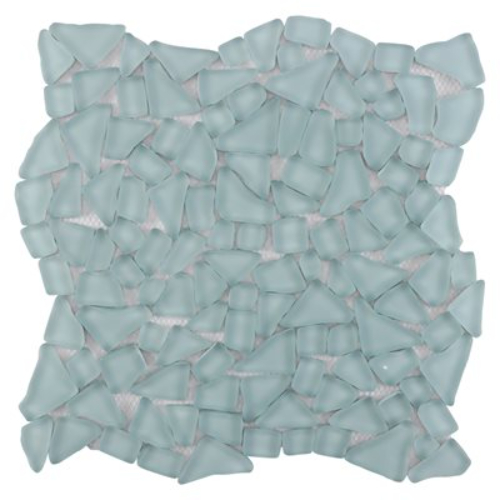 Dolphin Atlantic Blue glass pebble tile features a frosted finish and deep ocean tones, ideal for walls, floors, showers, and pools. Each 12″ x 12″ sheet covers 1 sq. ft. For a seamless, natural look, reposition pebbles at seams. Not heat resistant. Sold by the sheet.