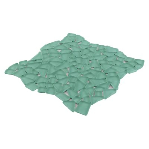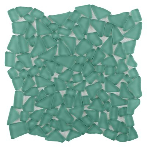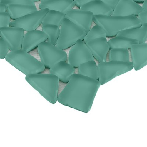 Dolphin Seafoam Green glass pebble tile features a frosted finish and calming green tones. Perfect for walls, showers, floors, and pools, each 12″ x 12″ sheet covers 1 sq. ft. Sheets may require edge blending for a seamless, natural look. Sold by the sheet. Heat resistance not recommended.