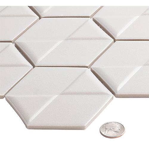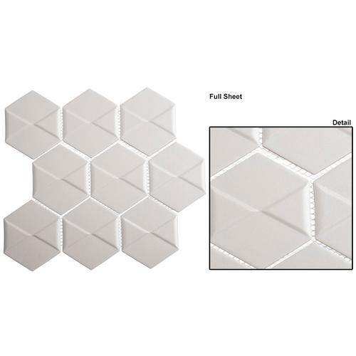 Introducing Dramon: a porcelain tile sheet measuring 10 x 11 3/8″. Each sheet covers 0.79 sqf, with 3 rows and 9 tiles per sheet. The tile thickness varies, and all tiles are mesh-mounted for easy installation.