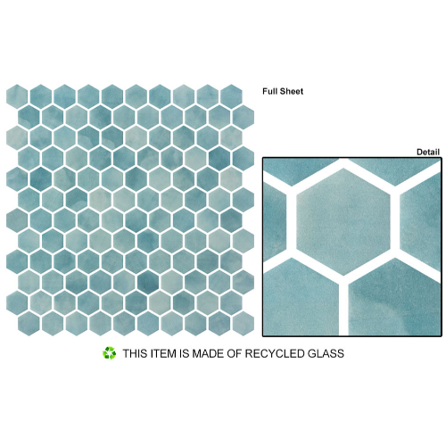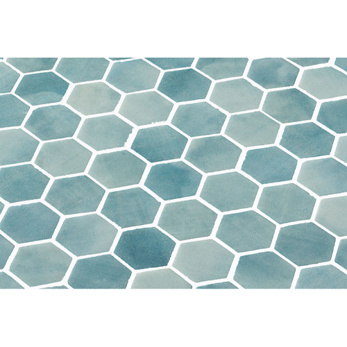 Introducing Fjord Amolie: 1″ Hex tiles on 11 1/2″x 11 13/16″ sheets. Each sheet covers .943 SQF with 12 rows of 120 tiles. Cut into borders every 2 rows, 5/32″ thick with 1/16″ grout joint. Mesh mounted for easy installation.