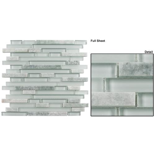 Introducing Frosted Dusk: Elegant glass tiles in sizes 5/8″ x 2″, 5/8″ x 4″, 5/8″ x 6″, and 5/8″ x 8″. Each sheet (12″ x 12″) holds 52 tiles with 1/16″ grout joints. Mesh-mounted for easy installation at 5/16″ thickness.