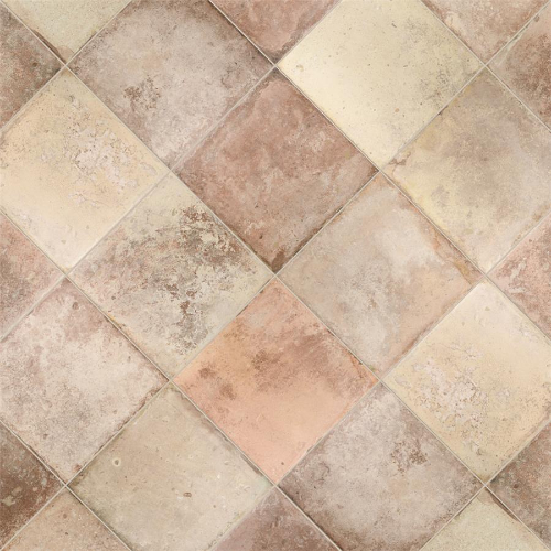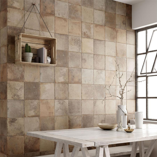 Transform your space with Kings Alora Clay Ceramic Tile. Imported from Spain, these 17-5/8″ x 17-5/8″ slabs feature a unique low-sheen glaze in beige and brown tones. Designed by Francisco Segarra, each tile showcases 17 different texture variations for an authentic aged look. Customize with your choice of grout color.