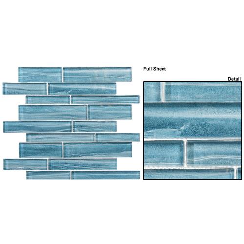 Introducing Nautical Spray: Random Brick tiles in 11 3/4” x 11 3/4” sheets. Each sheet covers .96 SQF with 9 rows of 18 tiles. Cut into borders every 3 tiles, 5/16” thick with 1/16” grout joint. Mesh mounted for easy installation.