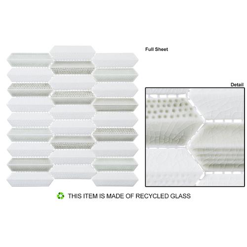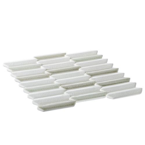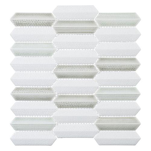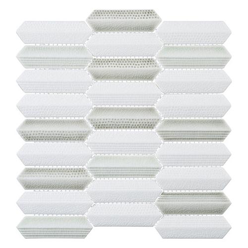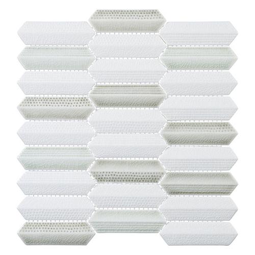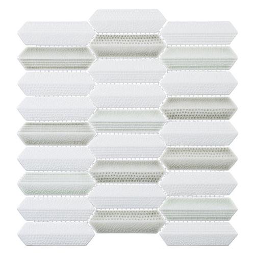 Introducing Neyland Daze: 1” x 4” Hex nominal tiles in a 10 3/4″ x 11 1/2″ sheet. Each sheet covers .86 SQF with 27 tiles in 9 rows. These 9.8mm thick tiles feature a 1/16″ (2mm) grout joint and come mesh mounted for easy installation.