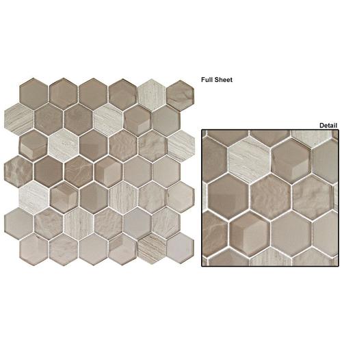 Introducing Nimbus Cloud: 2” Hexagon tiles on 12” x 11 7/8” sheets. Each sheet covers 0.99 SF with 42 tiles, 1/4″ thick. Grout joints are 1/8″. Mesh mounted for easy installation.