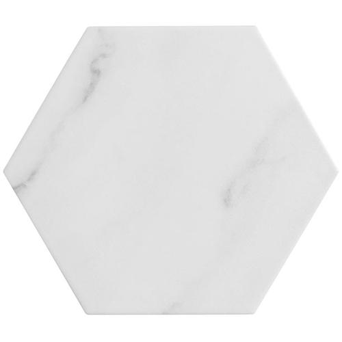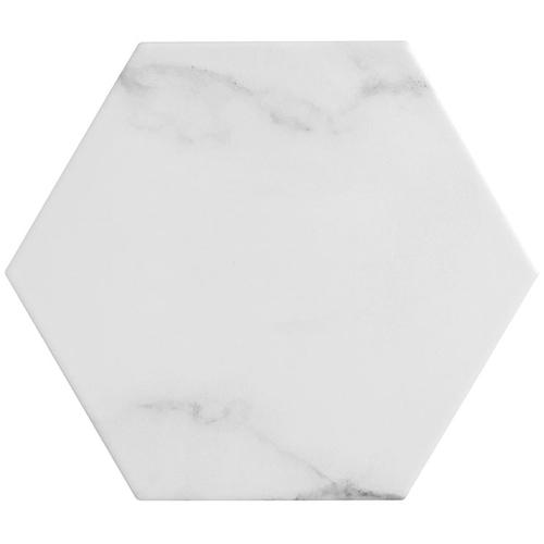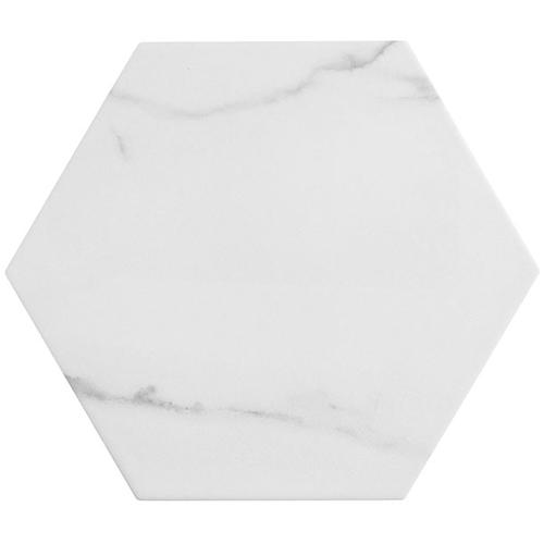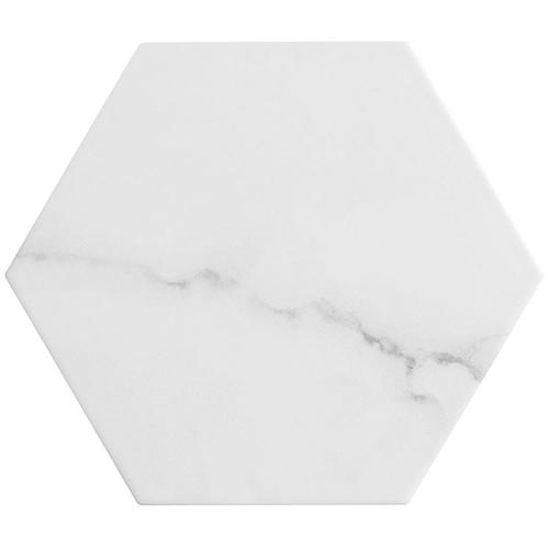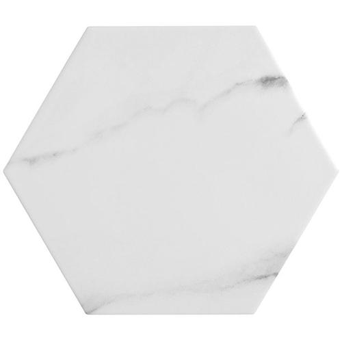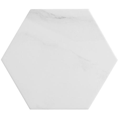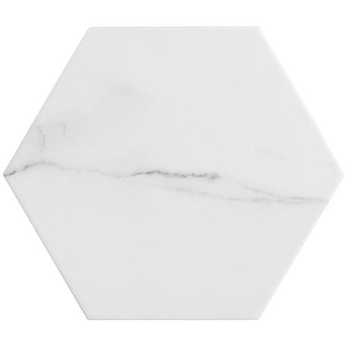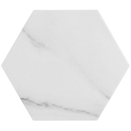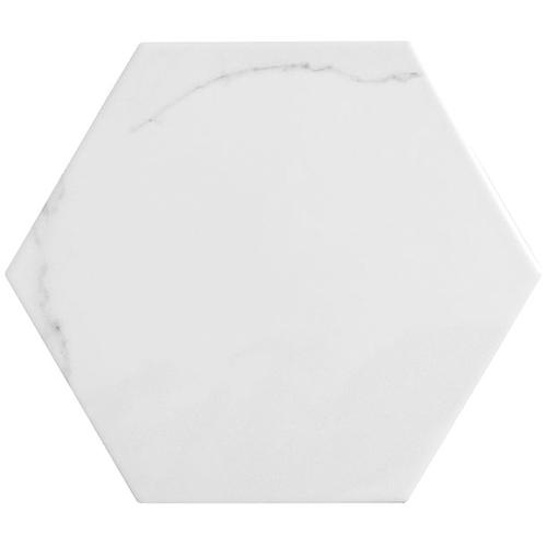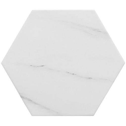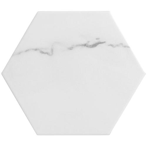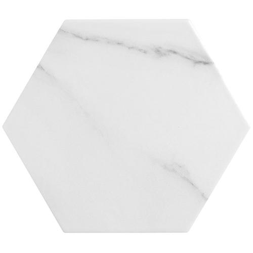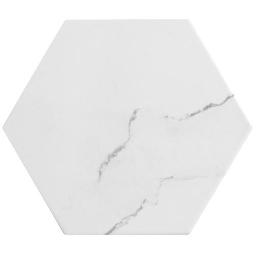 Introducing Oley Finesse (hex), a sleek porcelain tile with a glossy veining on a matte white base. Each box covers 9.90 SQF with 25 tiles sized at 8″x9 1/4″. The 8mm thick tiles feature straight edges and a recommended 1/8″ grout joint. Sold exclusively in box quantities.