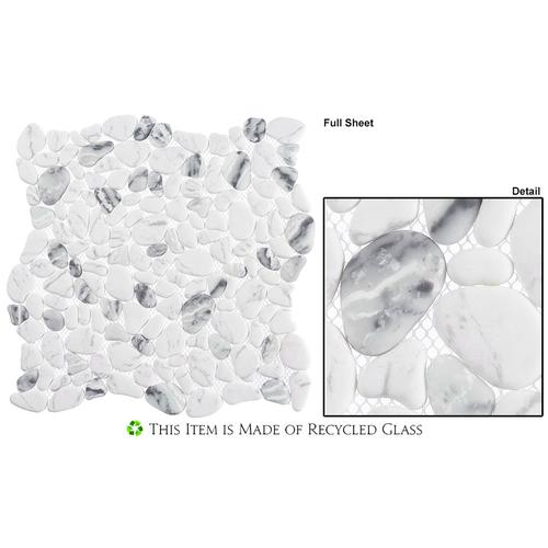 Introducing Pebbly Shore: a versatile tile with varying sizes per sheet, covering 1.02 SQF. Each sheet contains varying rows and tiles, with a thickness of 9/32″ (7mm) and a 3/16″ (5mm) grout joint. Mesh mounted for easy installation.