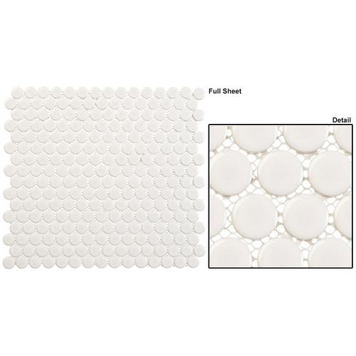 Enhance your space with Pillar Shine 3/4″ Penny Round Glossy tiles. Each sheet measures 11 3/8″ x 12 15/16″ and covers .97 SQF. With 16 rows and 240 tiles per sheet, these 3/16″ thick tiles are mesh-mounted for easy installation. Cut into borders every 2 rows with a 1/16″ grout joint.