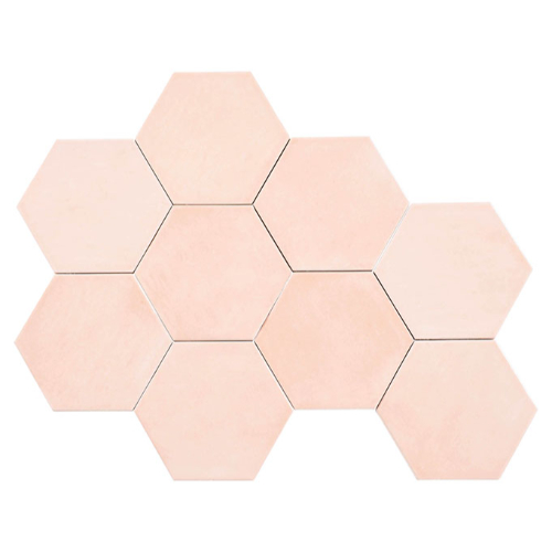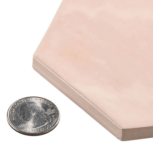 Introducing Provence Rose Hex: A 4″x5″ nominal ceramic tile with a glossy finish. Each box covers 5.38 SQF, containing 50 tiles at 9mm thickness. Sold in box quantities only, with pressed edges and a recommended 1/8″ grout joint. V3 moderate variation, dry layout recommended.