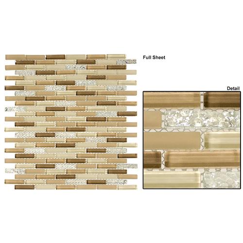 Enhance your space with Sandstone Froth tiles. Each tile measures 3/8” x 1 5/8” and is mesh-mounted for easy installation. With a sheet size of 10 1/4” x 11 1/2” and .81 SQF coverage, these tiles are perfect for creating stunning borders.