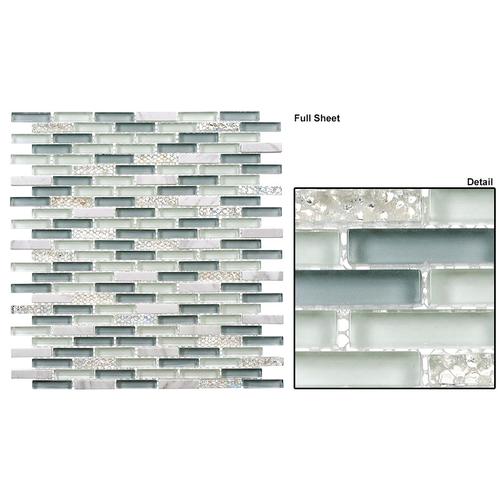 Introducing Sky Topaz: exquisite 3/8” x 1 5/8” tiles on 10 1/4” x 11 1/2” sheets. With .81 SQF coverage, 26 rows per sheet, and 5/16” thickness, these mesh-mounted tiles offer versatile border options. Grout joints are set at 1/8” (2mm) for a seamless finish.