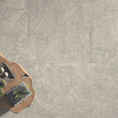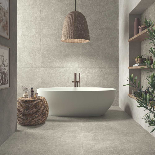 Smoke 40×40 porcelain tile showcases a matte finish in light grey with a limestone-inspired stone style. This large-format square tile is ideal for indoor applications including bathrooms, kitchens, floors, and walls. Combining durability with subtle elegance, it enhances any space with a refined, contemporary look from the Antica collection.