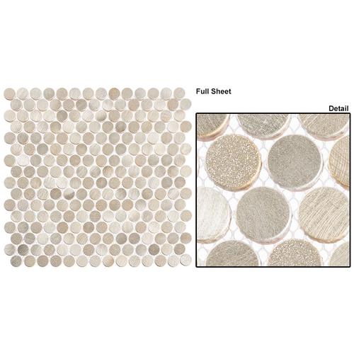 Introducing Thunderburst: ¾” penny round tiles in 11 4/5″ x 11 4/5″ sheets. Each sheet covers .97 SQF with 16 rows of 224 tiles. Cut into borders every 2 rows, 5/16″ thick with 1/16″ grout joint. Mesh mounted for easy installation.