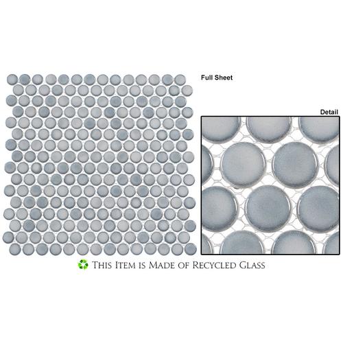 Introducing the Urbanite (Penny Round) tile. Tile Size: 3/4″ Penny Round. Sheet Size: 11 15/16″ x 12 1/8″. Sheet Coverage: 1 SQF. Rows Per Sheet: 16. Tiles Per Sheet: 224. Cut into Borders: Every 2 rows. Tile Thickness: 1/4″ (6mm). Grout Joint: 1/16″ (2mm). Mesh Mounted: Yes.