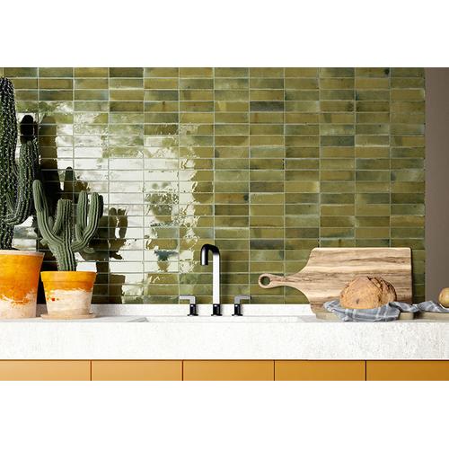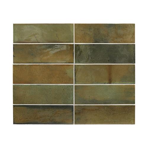 Introducing the Wild Olive 2.5×8 Glossy ceramic tile. Each box covers 5.38 SQF with 38 tiles, 9.5mm thick. Pressed edges, V4 substantial variation. Ideal for dry layout, recommended grout joint 3/16″ (5mm). Sold in box quantities only.