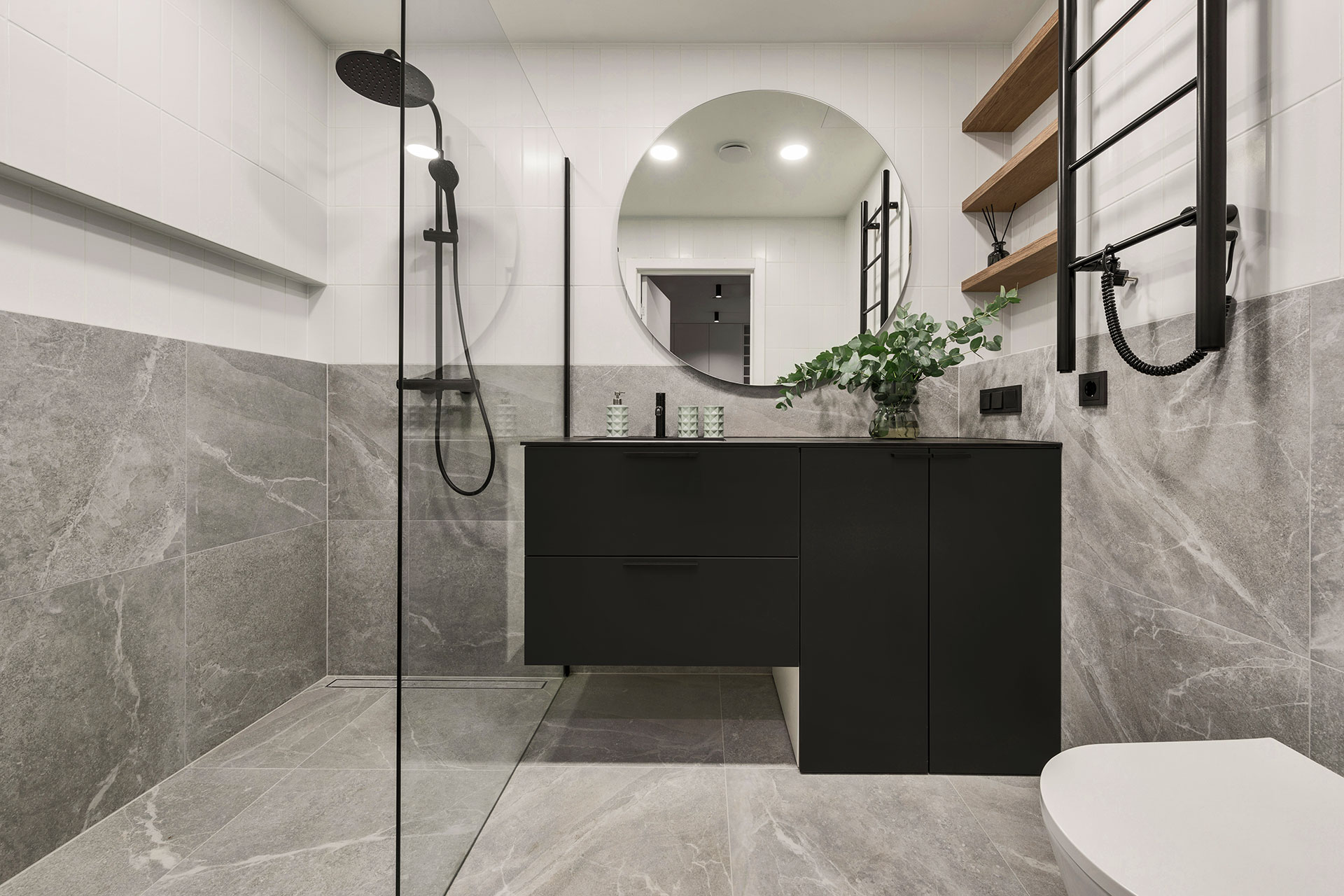 Dark tiles can look striking, but in a small space, they absorb light and make the room feel enclosed. Lighter tiles help bounce light around, creating an airy feel.
